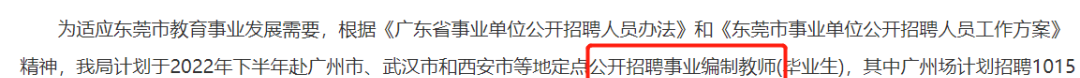 來源:22東莞教育局事業編制招聘1608名教師公告