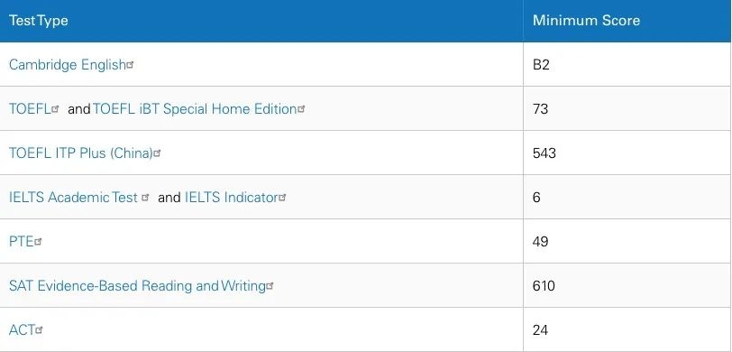 接受的最低語言成績標準: