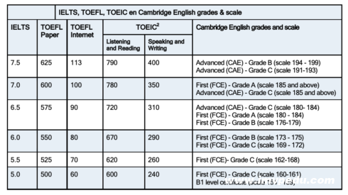 不接受機構托福考試、托福 ITP 考試或其他語言考試的證書。