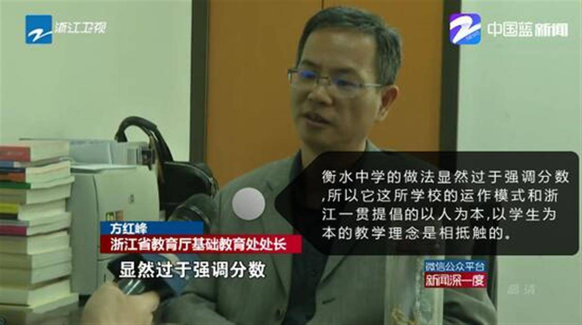 衡水中學可謂是毀譽參半。2017年初,河北衡水中學分校在浙江平湖揭牌,有人稱“引進衡水模式是浙江素質教育的倒退”。浙江省教育廳基礎教育處處長方紅峰表示,“它(衡水中學)是個應試教育的典型,眼睛里只有分數沒有人。跟我們浙江以人為本的素質教育理念不符合,他們認為是先進,我們認為是落后的,我們浙江不需要這樣的學校。”