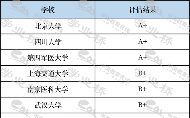 在第四輪學科評估中,口腔醫學學科被評為A+、B+的學校如下。