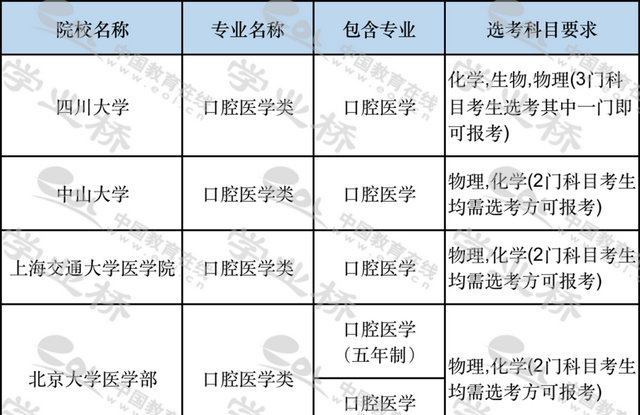 綜合選科要求,若要報考口腔醫學類專業,考生選考物理、化學和生物學科可報考的學校范圍更大。