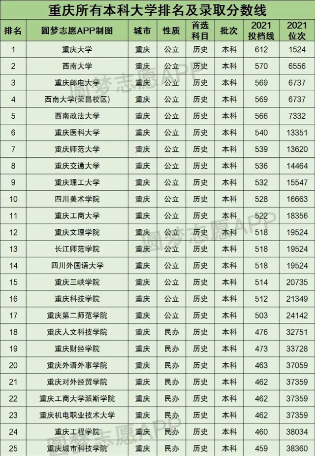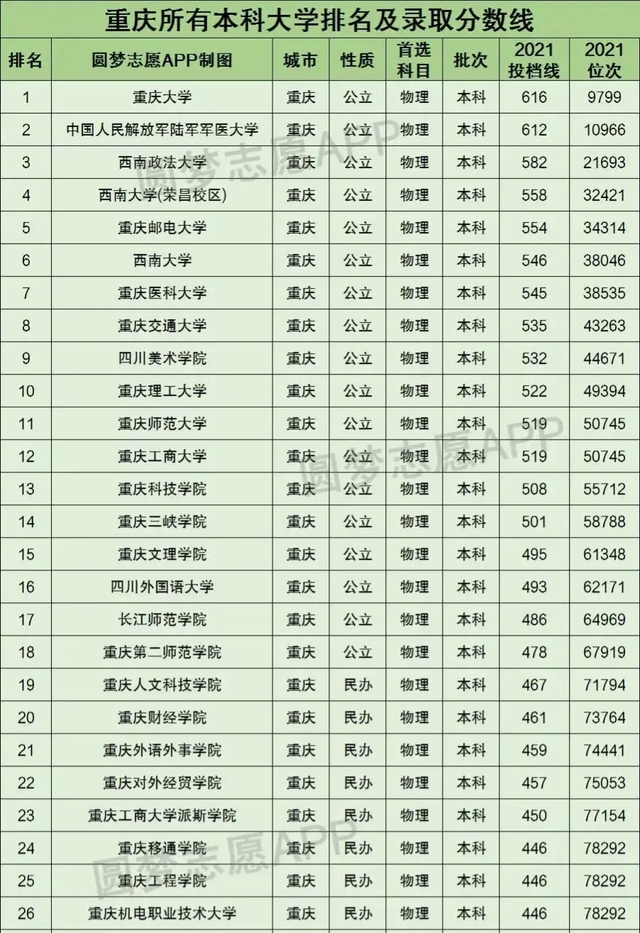 2024~2023年重慶市內大學投檔分數線主要供考生填報志愿時參考。它的主要作用是更快地篩選出目標院校,減少考生和家長挑選學校的工作量。