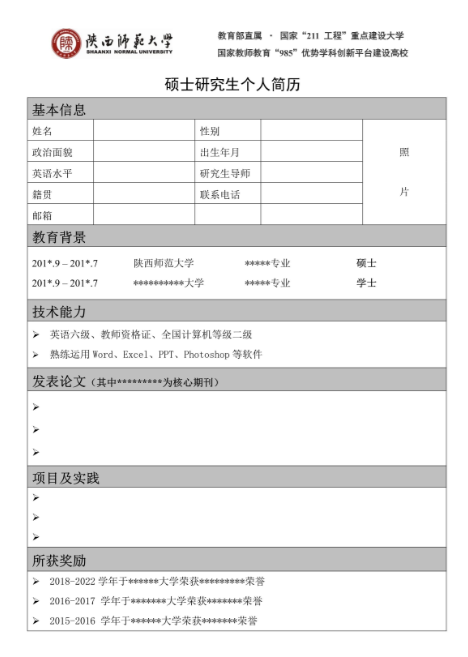 (6)所獲獎勵——從本科開始的各種獎項均可列入。