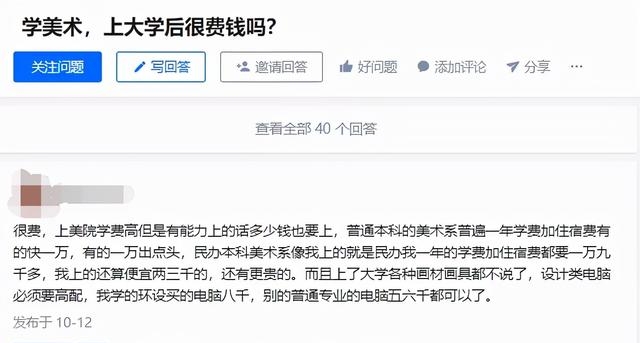 然而公辦學校的藝術類專業學費通常為8000-10000元每年,有的院校住宿費另算,花費真是不小。