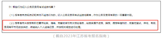 面試、體檢、考察、錄用等環節無故放棄有可能被記錄在誠信檔案,影響下一次報考,比如2023江蘇省考: