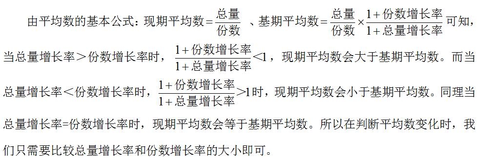 總量增長率>份數增長率,現期平均數>基期平均數,平均數上升