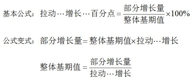 注意:1.拉動(dòng)…增長(zhǎng)的結(jié)果讀作百分點(diǎn),完整敘述為:部分拉動(dòng)整體增長(zhǎng)了…百分點(diǎn),這是一個(gè)固定搭配。