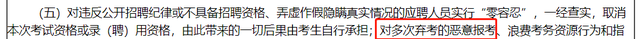 再如2023年永安市事業單位公開招聘工作人員的公告明確:對已確認參加面試但在面試當天臨時棄考,或進入體檢、考核、公示環節以及聘用后不報到的,三年內不得參加我市事業單位招聘人員考試。