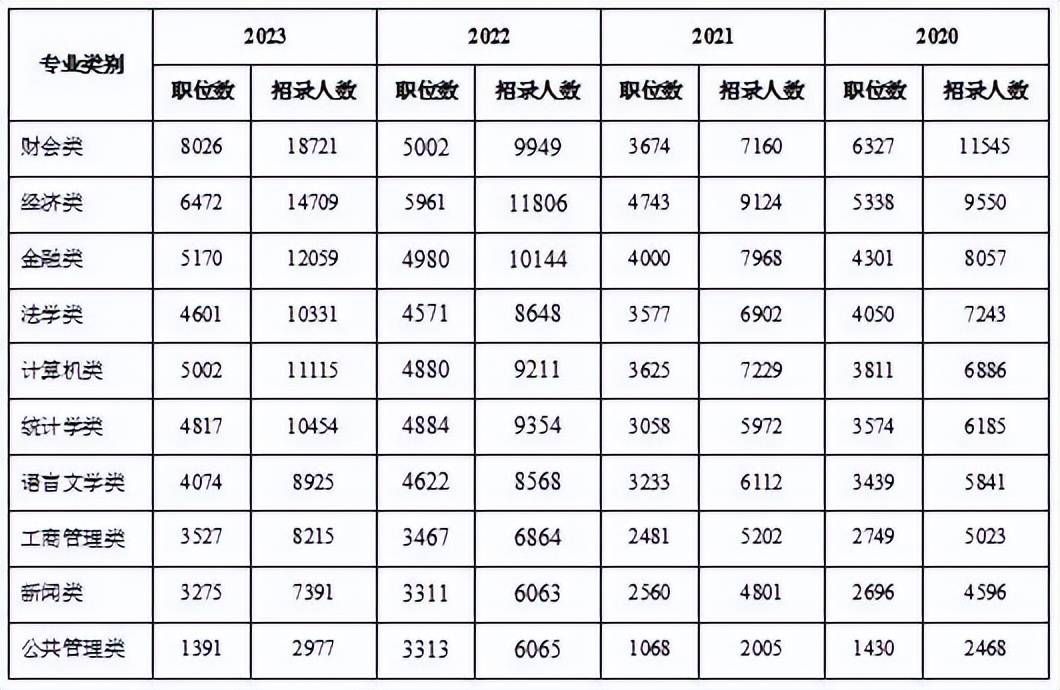 從近四年國考十大熱門專業的招錄數據統計中可看出,具有相應專業背景的考生可選擇職位數量非常龐大,最少也能篩選出一千多個職位,這對于考生來說是機遇相當充沛,完全不必擔心不具備報名資格,在數千個職位中總能選出一個符合自己的職位。