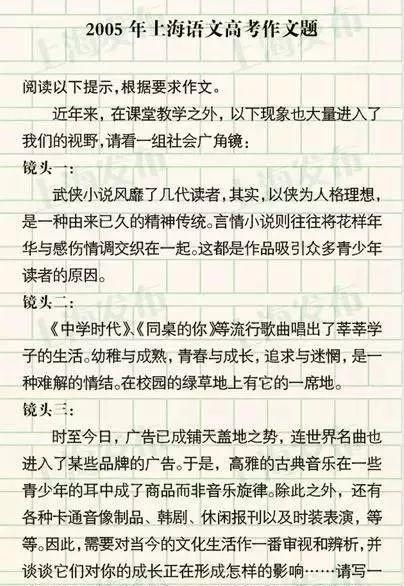 還記得你那一年的高考作文題嗎?2000-2023年上海高考作文題附后↓