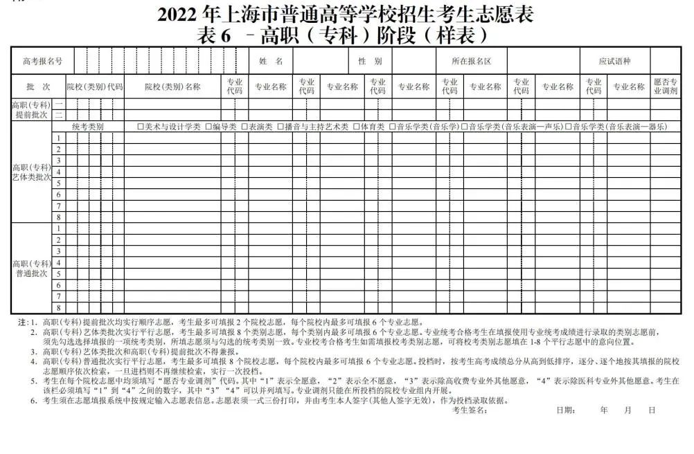 專科提前批次設(shè)置2個(gè)順序志愿;專科藝體類批次設(shè)置8個(gè)平行志愿;專科普通批次設(shè)置8個(gè)平行志愿。