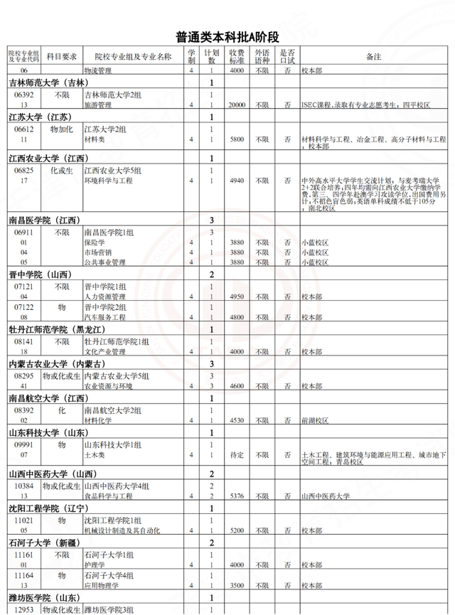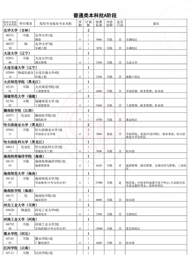 2.普通類本科批次A階段征詢志愿院校專業組余缺計劃表