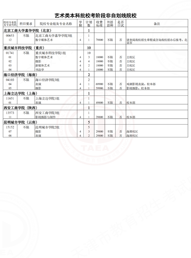 3.藝術類本科批次征詢志愿院校專業組余缺計劃表