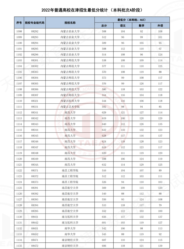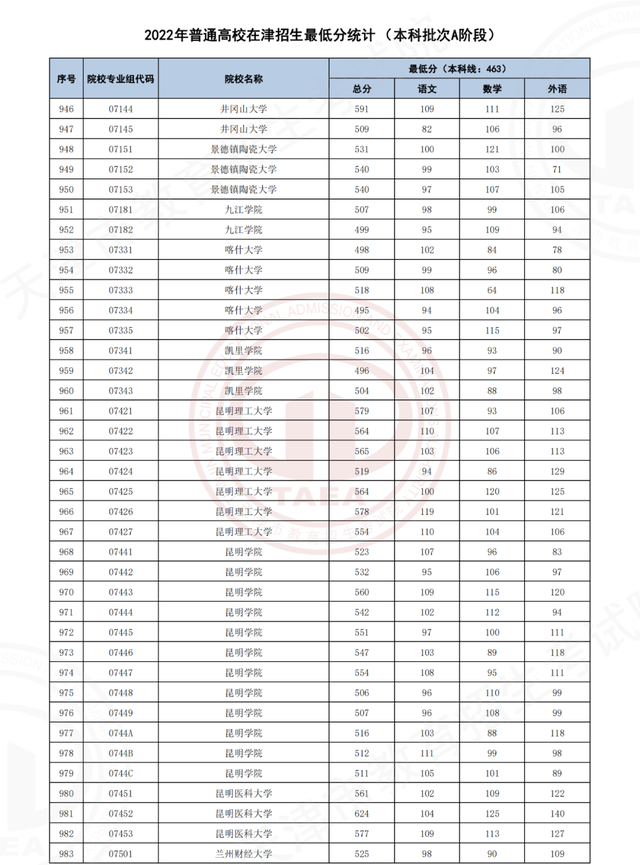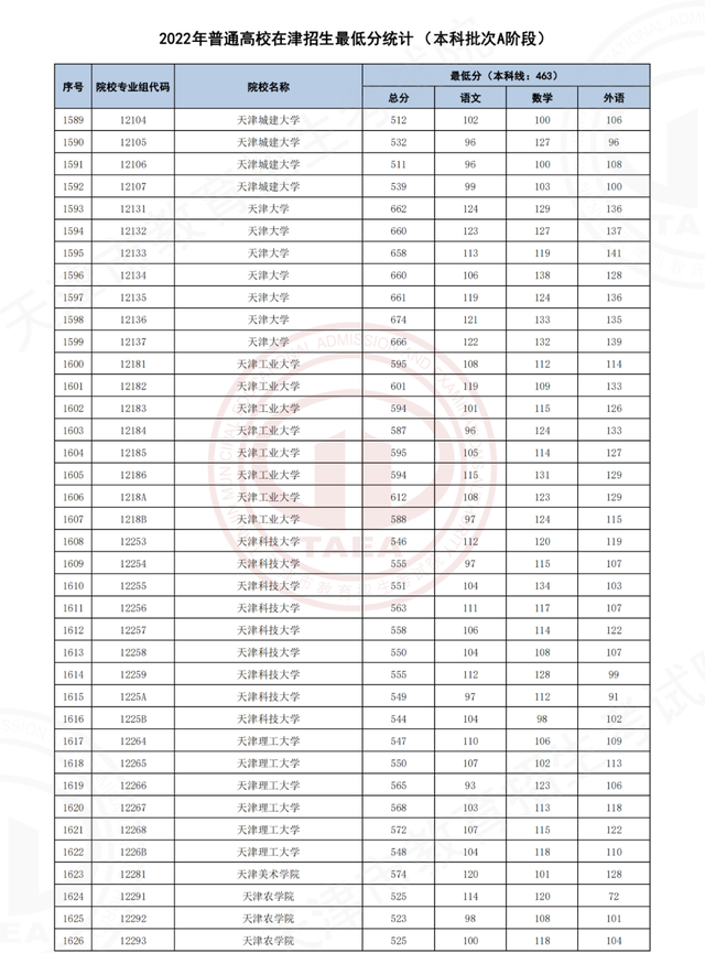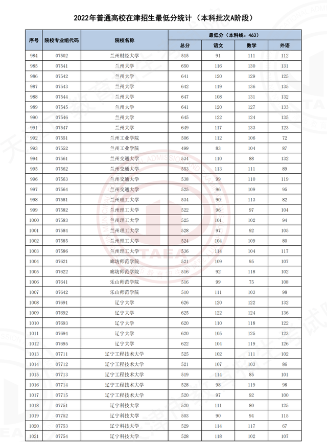 1.普通類本科批次A階段各院校專業組平行志愿錄取最低分