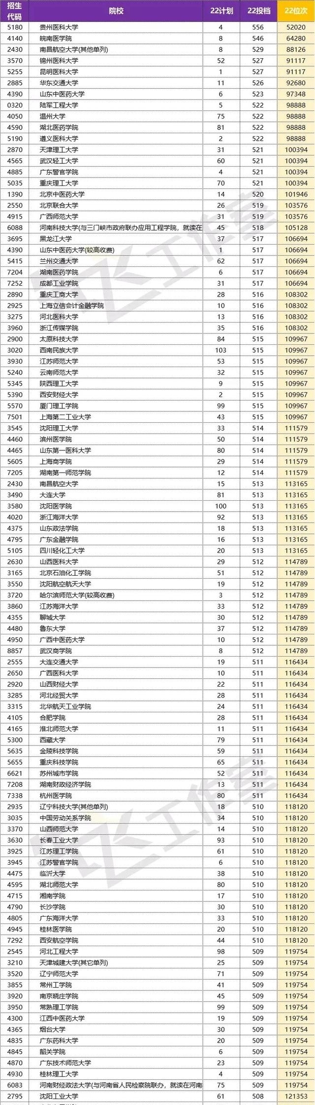2023年7月28日—30日河南本科二批投檔、錄取。理科:貴州醫科大學爆火,投檔分數線556分,投檔位次52023名,高出省控一本線47分,高出省控二本線151分!