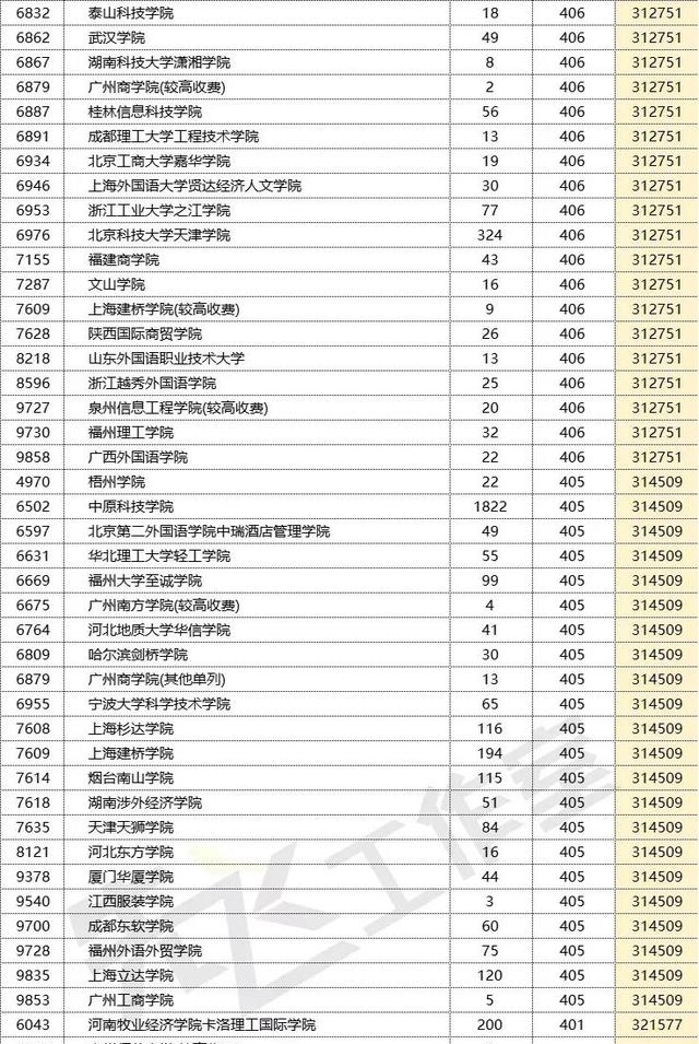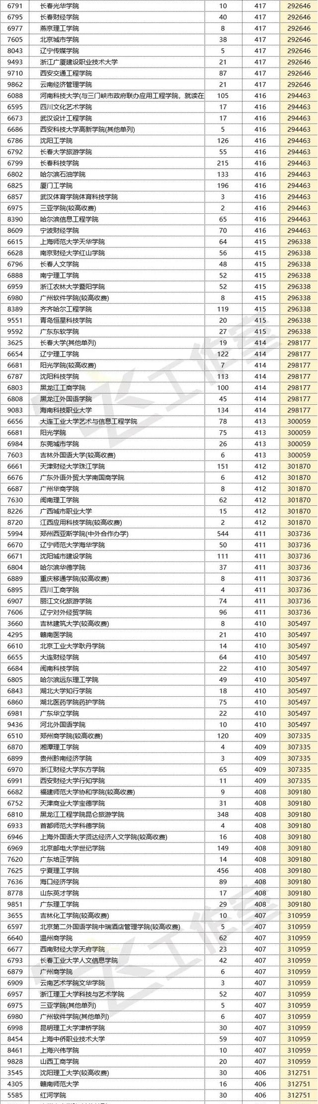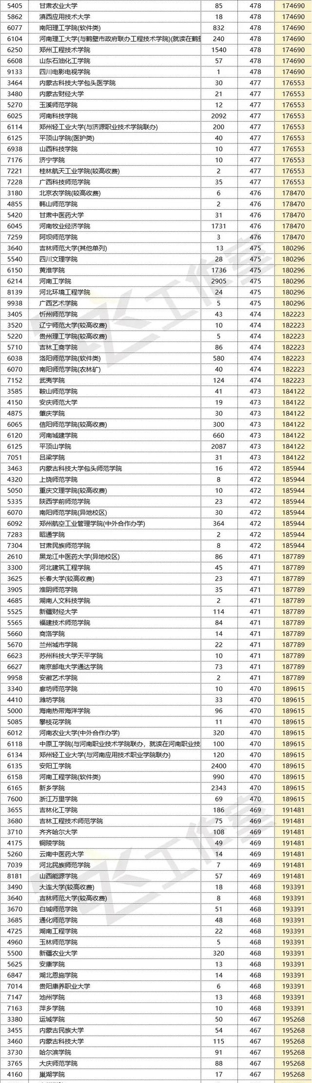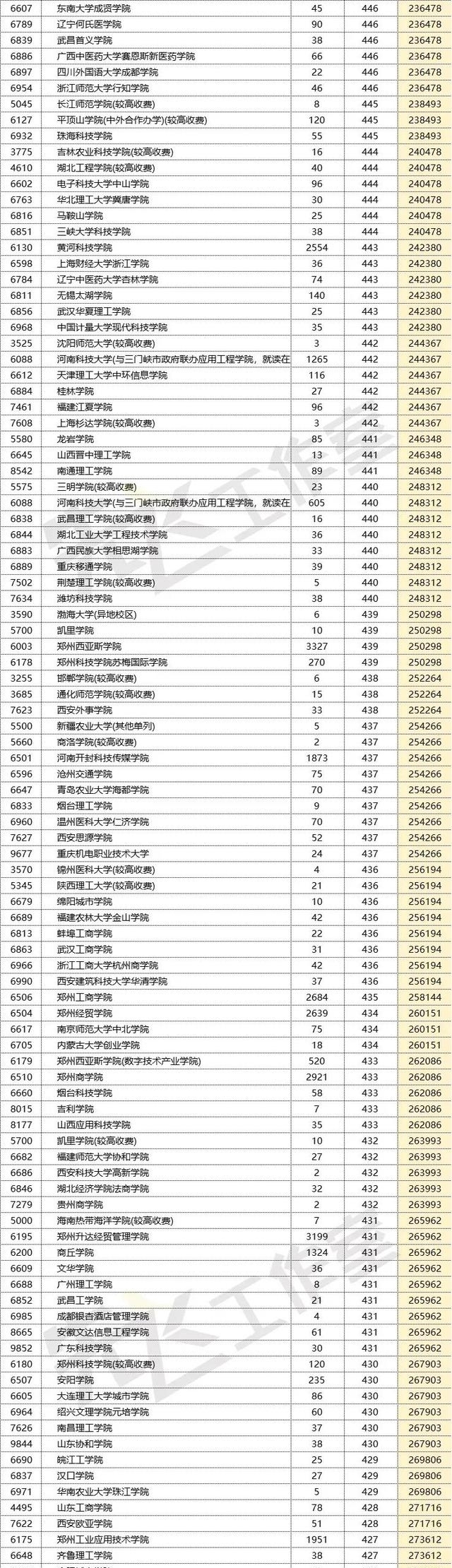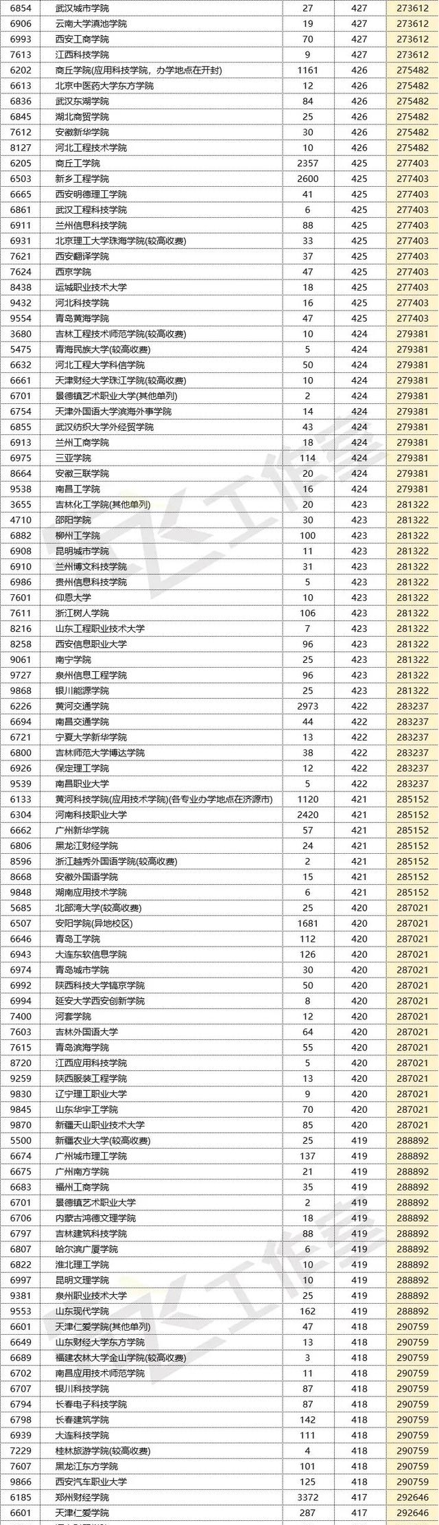 其中:商丘工學院、新鄉工程學院425分、位次277403