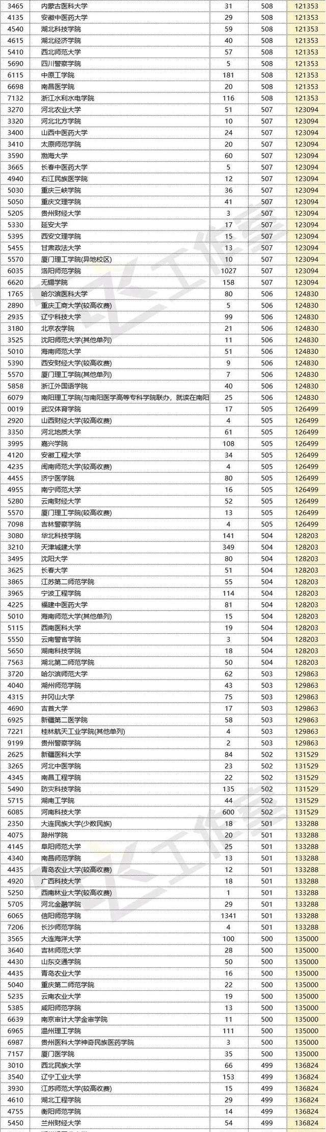 河南科技大學、湖南工程學院、新疆醫科大學502分、位次131529