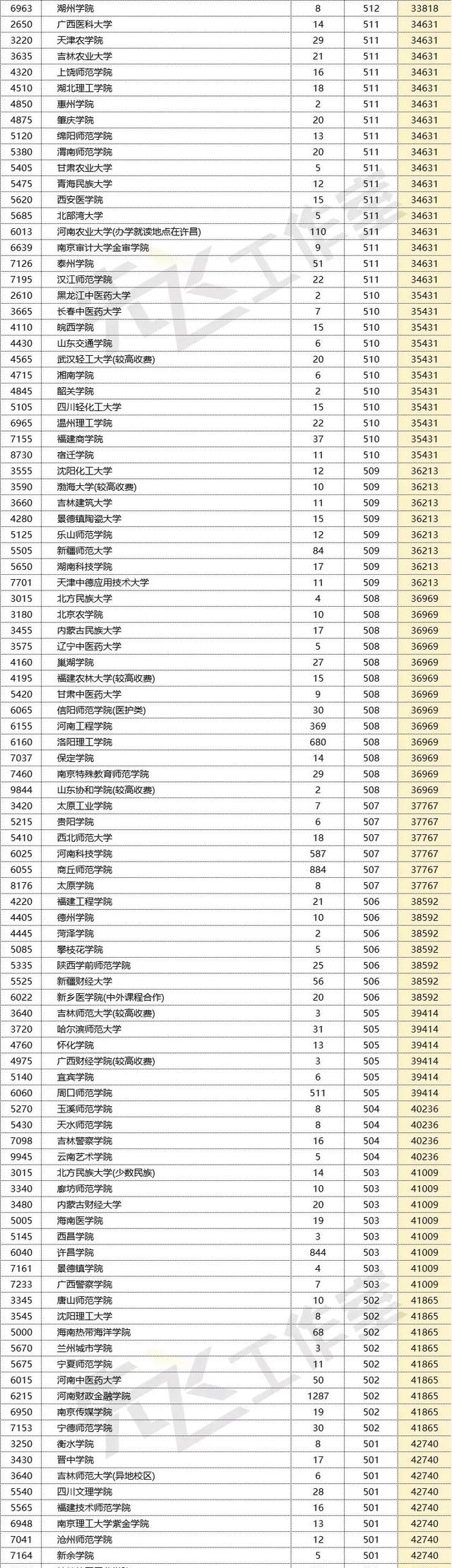 沈陽工業大學、中原工學院、西北師范大學508分、位次121353