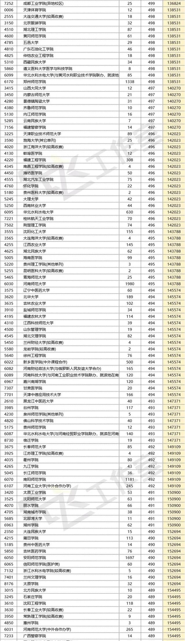 文科投檔分492—500分的高校有112所(包含較高收費、單列、合作辦學等),其中: