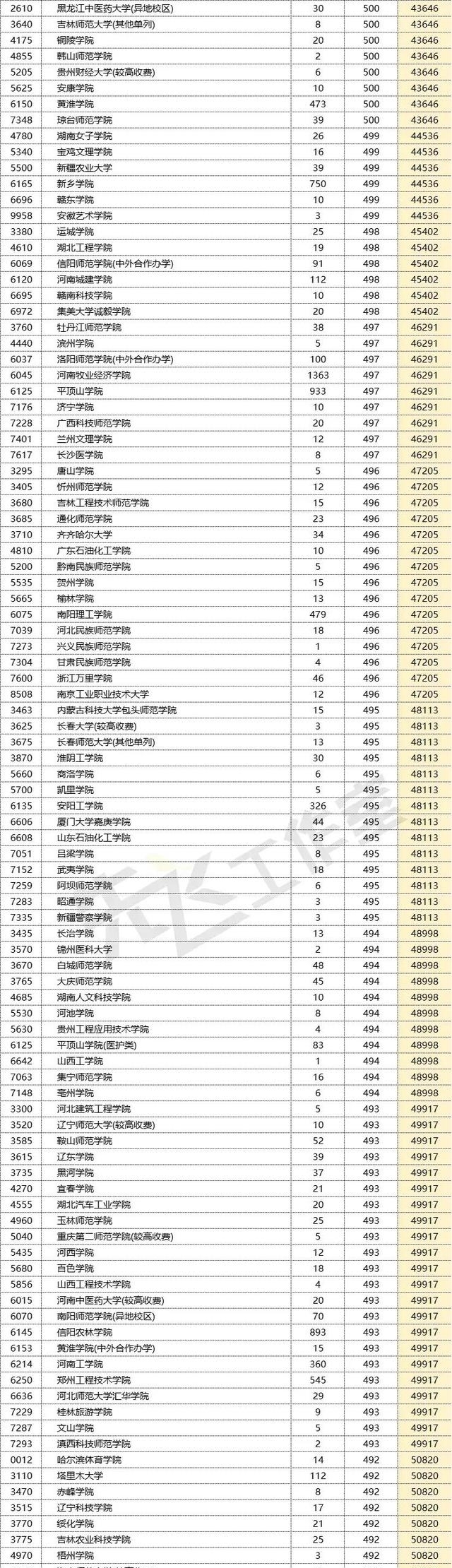 河南牧業經濟學院、平頂山學院、長沙醫學院497分、位次46291