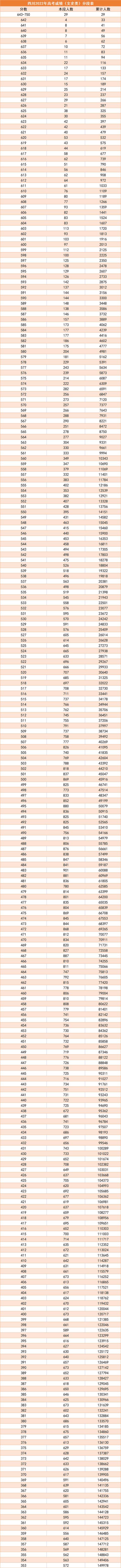 四川省2023年高考一分一段表(文科):