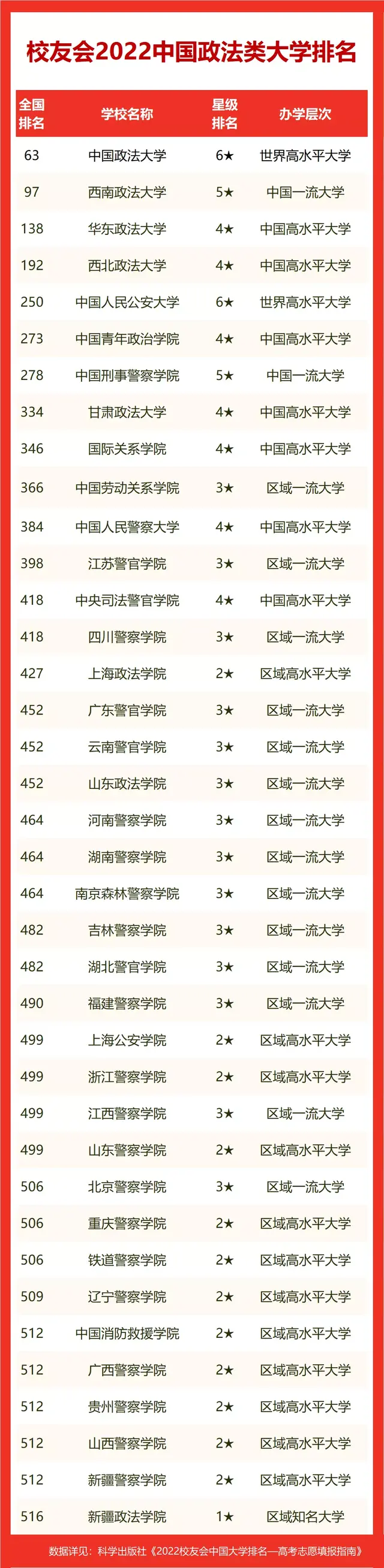 最新發(fā)布校友會(huì)2023中國(guó)各類型大學(xué)排名,中國(guó)政法大學(xué)、河北政法職業(yè)學(xué)院分列2023中國(guó)政法類大學(xué)排名、2023中國(guó)政法類高職院校排名第一。