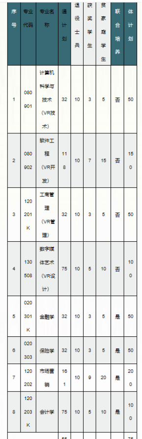 而今年江西財經大學的專升本招生專業一共有八個,分別是計算機科學與技術(VR技術)、軟件工程(VR技術)、工商管理(VR管理)等等。