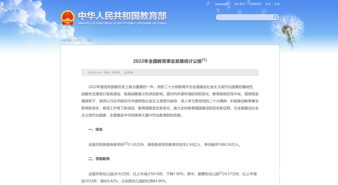 民辦幼兒園17.32萬所,比上年增加7457所,增長4.50%;入園兒童904.68萬人;在園幼兒2649.44萬人,比上年增加9.66萬人,增長0.37%。