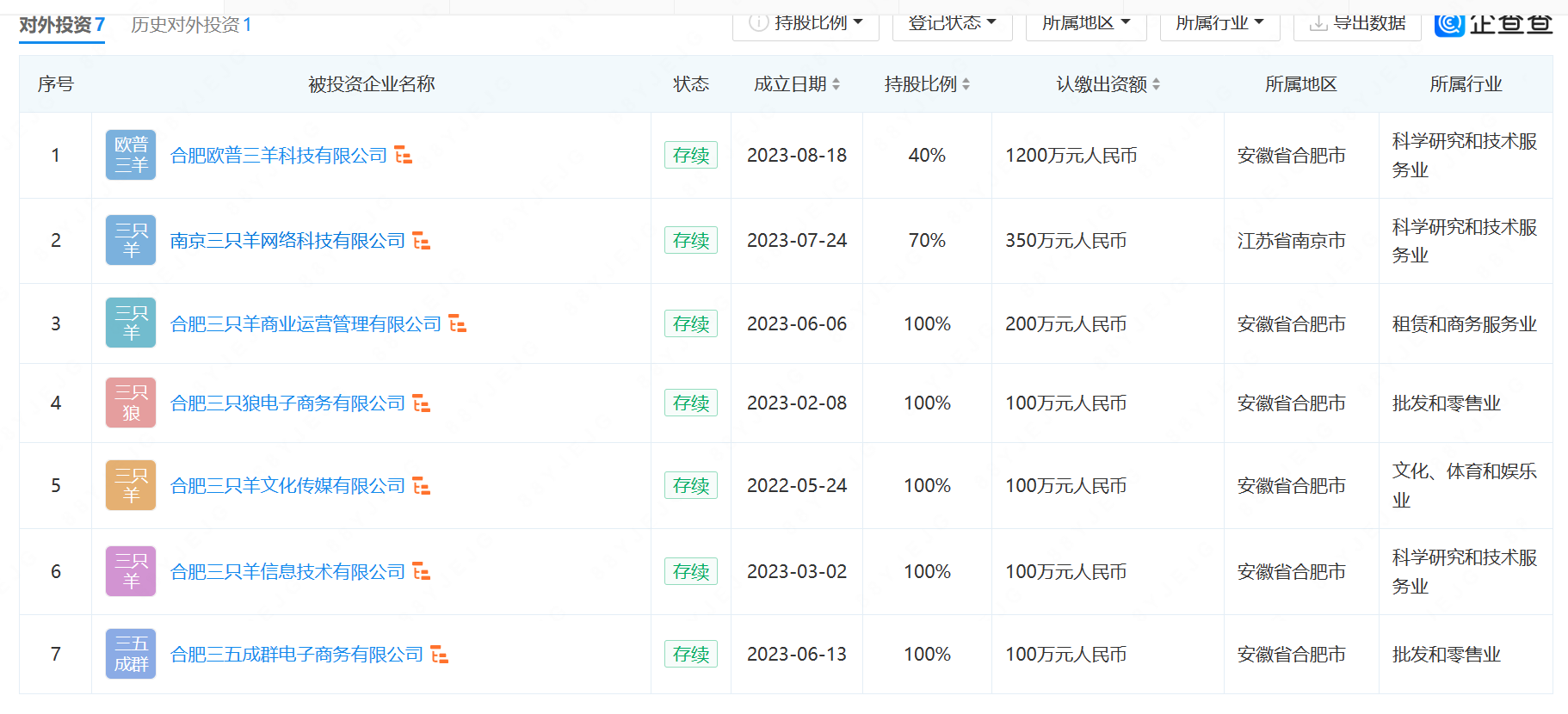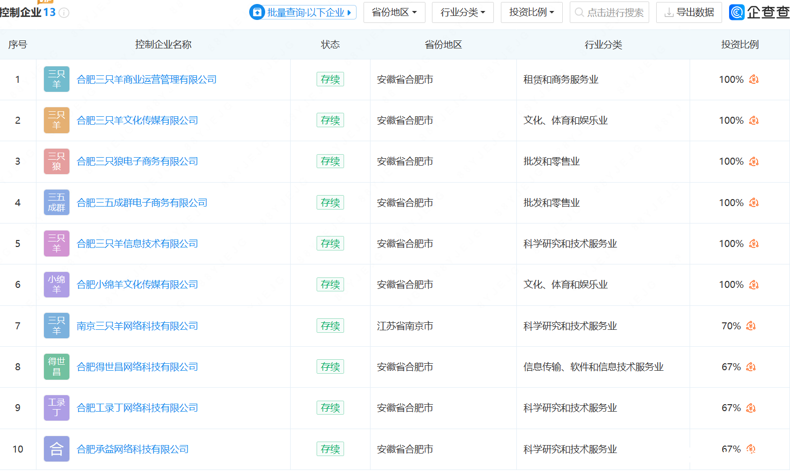 企查查APP顯示,“瘋狂小楊哥”張慶楊目前控制企業(yè)有13家,包括合肥三只羊商業(yè)運營管理有限公司、合肥三只羊文化傳媒有限公司、合肥三只狼電子商務(wù)有限公司等,商業(yè)版圖涉及文化傳媒、直播電商、創(chuàng)業(yè)投資、供應(yīng)鏈管理、交通設(shè)施等。