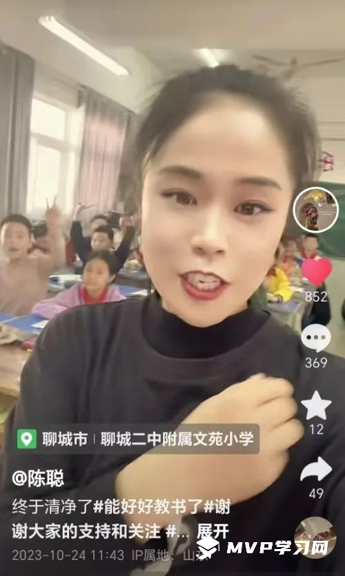 10月24日上午11時(shí)許,記者注意到,陳老師在自己的個(gè)人社交媒體上再次發(fā)布視頻稱:“終于清凈了。”視頻里她站在講臺(tái)上對(duì)著鏡頭笑著喊了一句“終于能好好教書了”,她身后的學(xué)生們齊聲發(fā)出“耶”的歡呼。