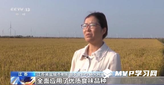 江蘇省鹽城市射陽縣農業科學研究所副所長 黃萍霞:全面應用了優質食味品種,同時全部采用水稻毯式播苗機插高產栽培技術,配合綠色循環種養、病蟲害綜合防治這些技術,獲得了今年的高產。