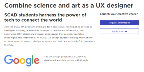 例如用戶體驗設計(UX) 是由Google與SCAD合作開發項目,其課程技術與設計交叉領域的獨特專業知識相結合,5門課程均由Google與SCAD聯合編寫。