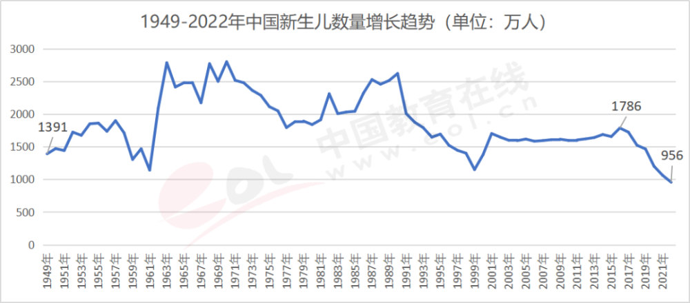 圖1.4.1 1949-2024年中國新生兒數量增長趨勢 數據來源:國家統計局